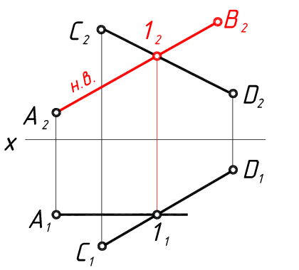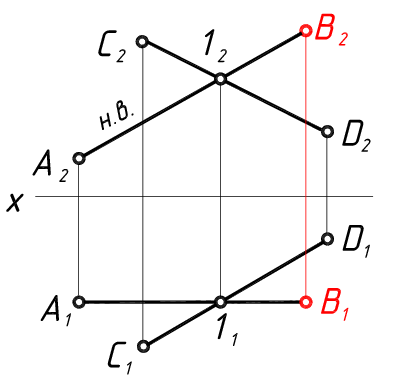 Через точку А провести фронталь АВ длиной 40 мм, пересекающую прямую СD