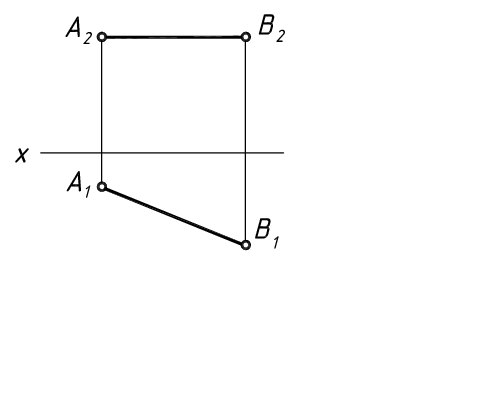- Для этого новую ось проекций x1 проведем перпендикулярно А1В1, а расстояние от новой оси до проекции возьмем с плоскости П2
