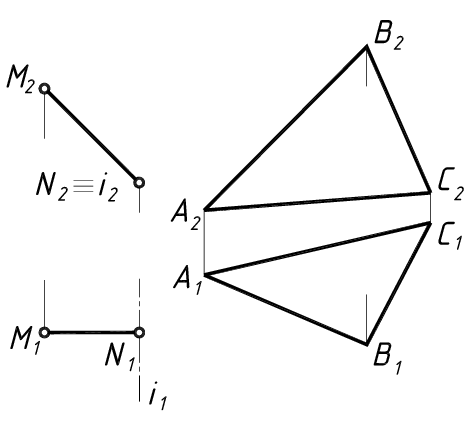 Повернуть прямую MN вокруг оси i так, чтобы она стала параллельна заданной плоскости