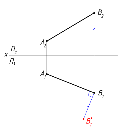 Определить натуральную величину отрезка АВ методом прямоугольного треугольника